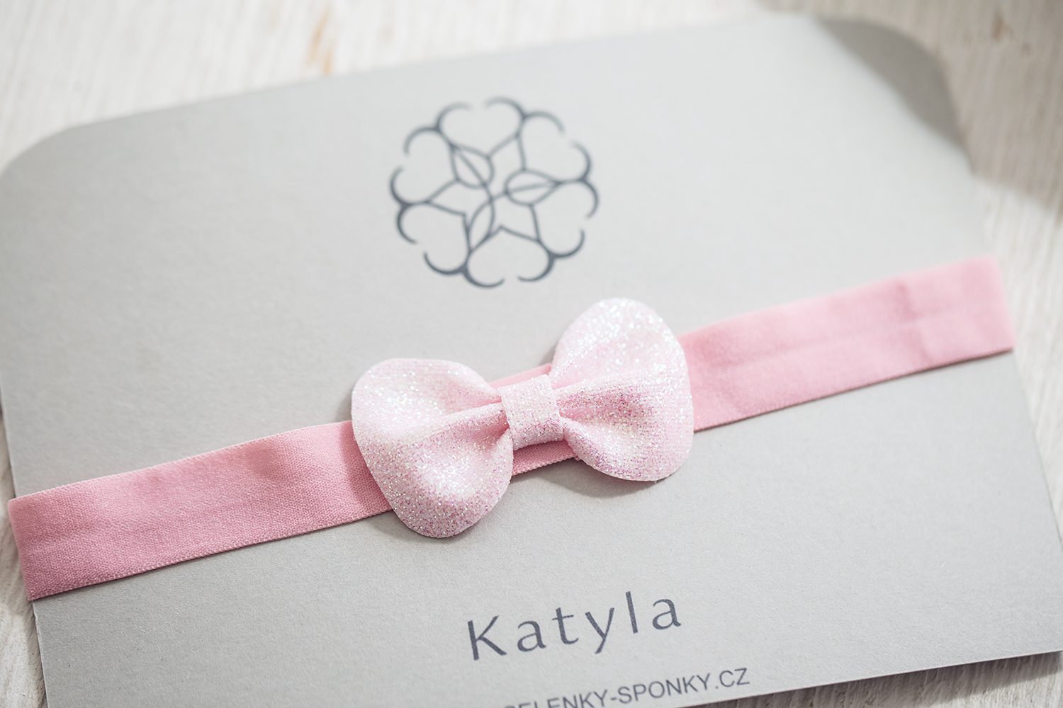 Dětská čelenka na gumce se tpytivou mašlí – Růžová