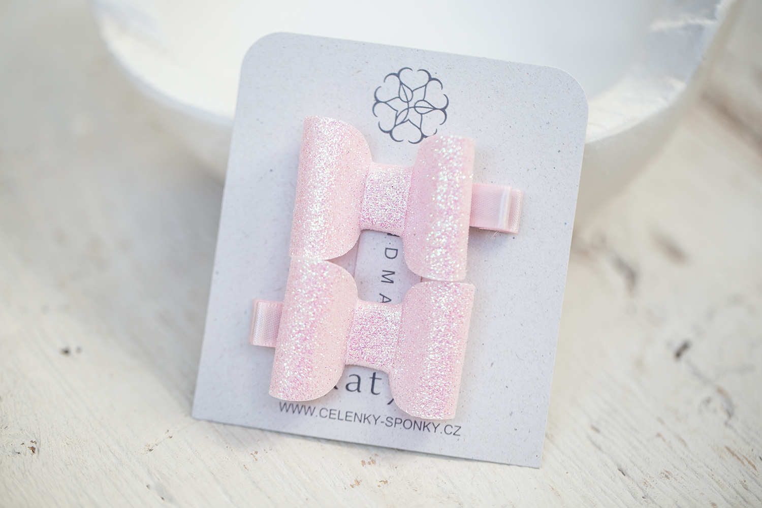 Dětské sponky do vlasů – Růžové mašle lesklé