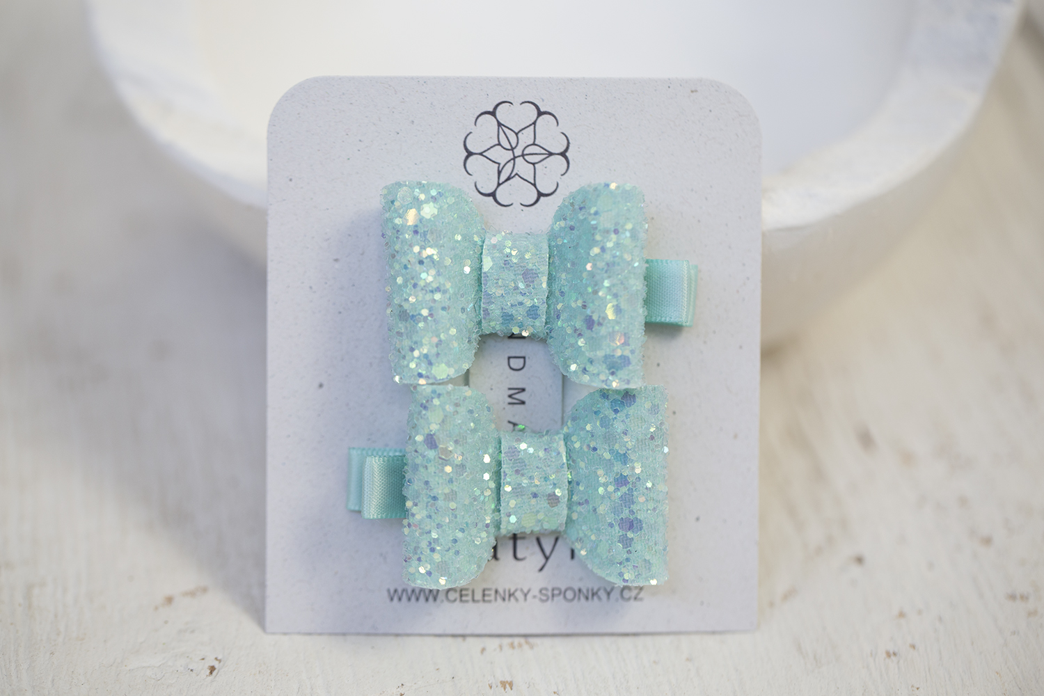 Dětské sponky do vlasů- třpytivé mašle Mentolově zelené