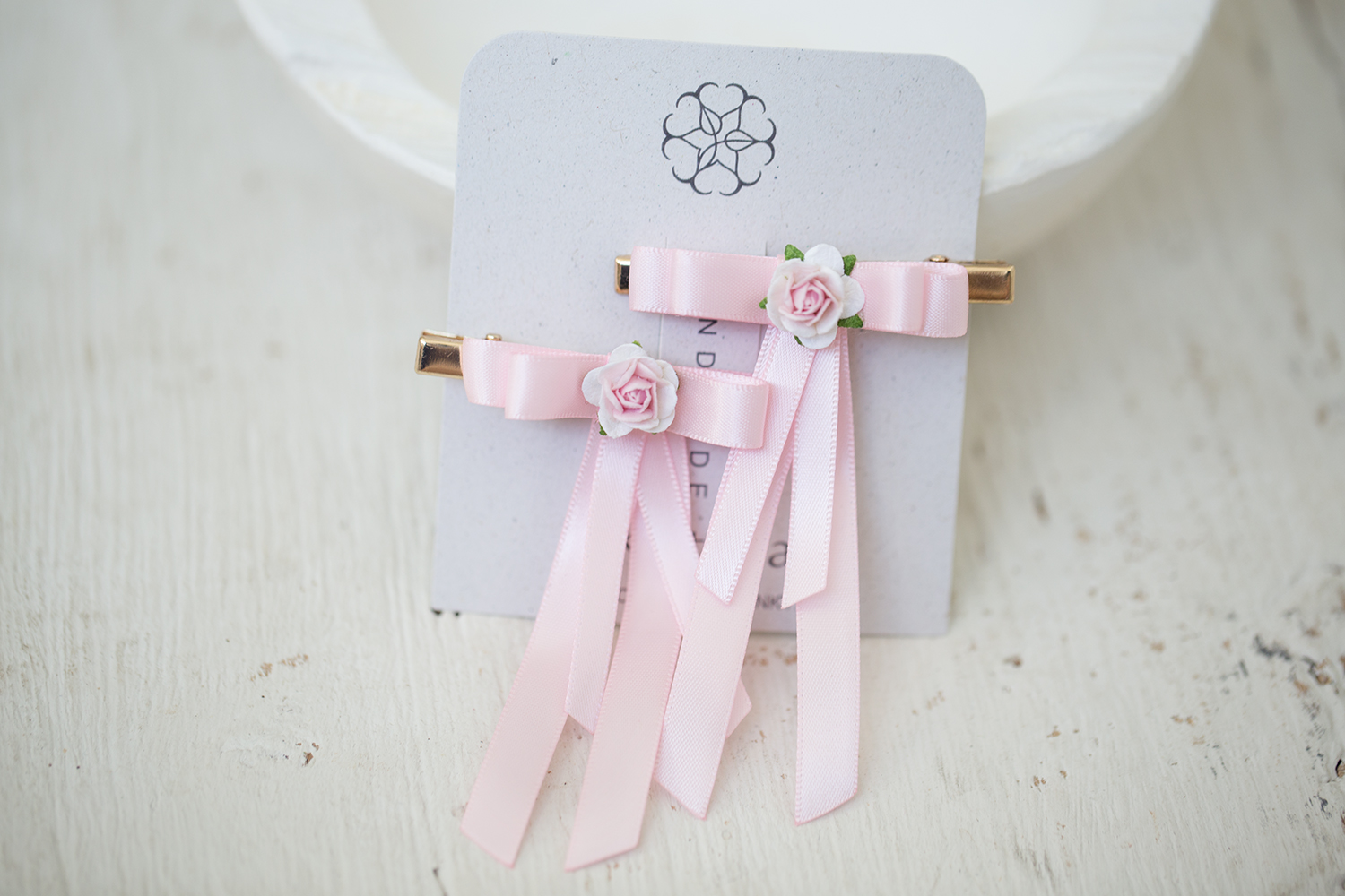 Nádherné saténové mašličky s květinkou na zlatém klipu se zoubky. Dokonalé mašličky pro Váš slavnostní účes.