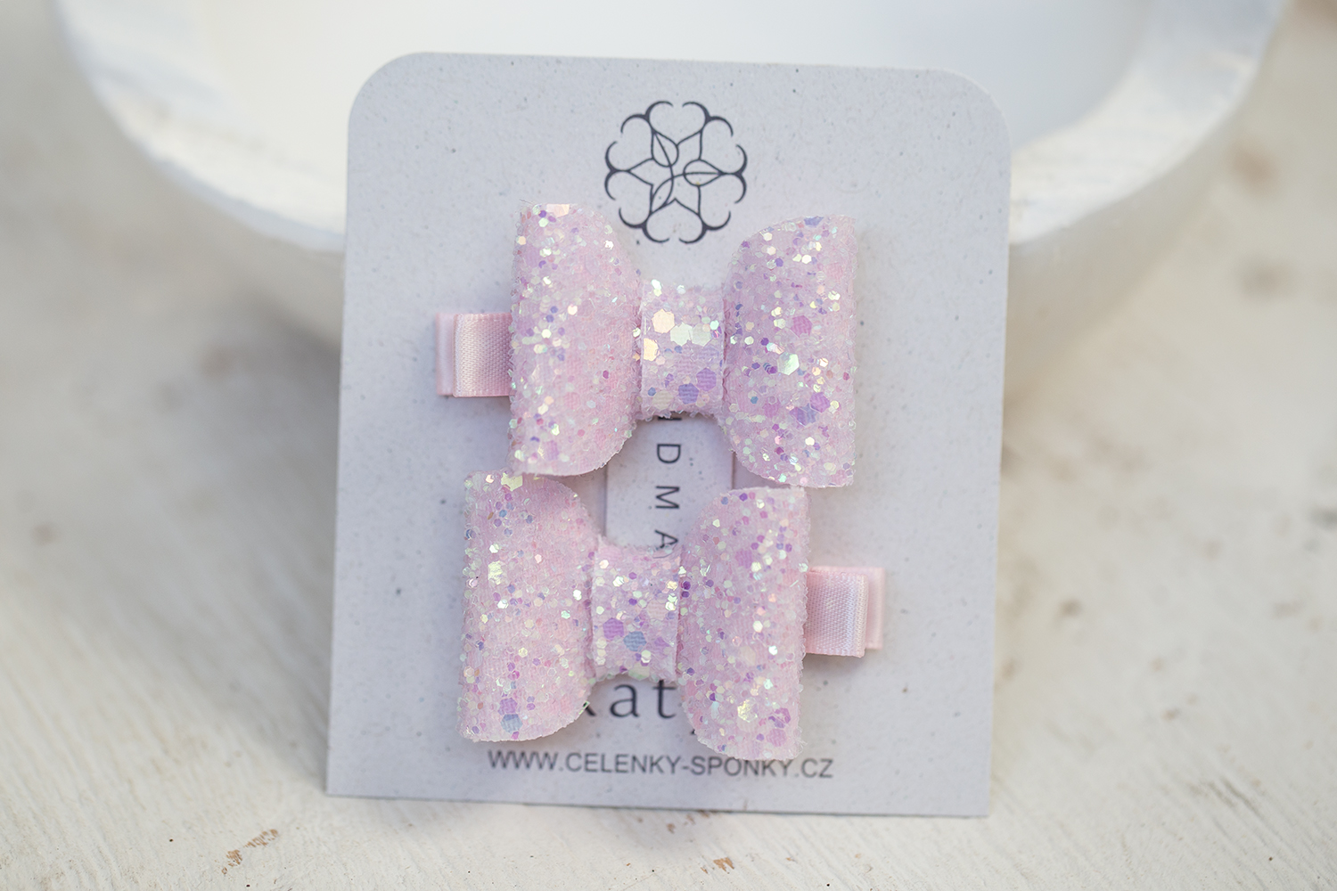 Perlově růžové mašle, které se krásně třpytí a lesknou ve vlasech. Dokonalý vlasový doplněk k šatičkám. Saténová sponka světle růžová s výraznou mašlí do vlasů.