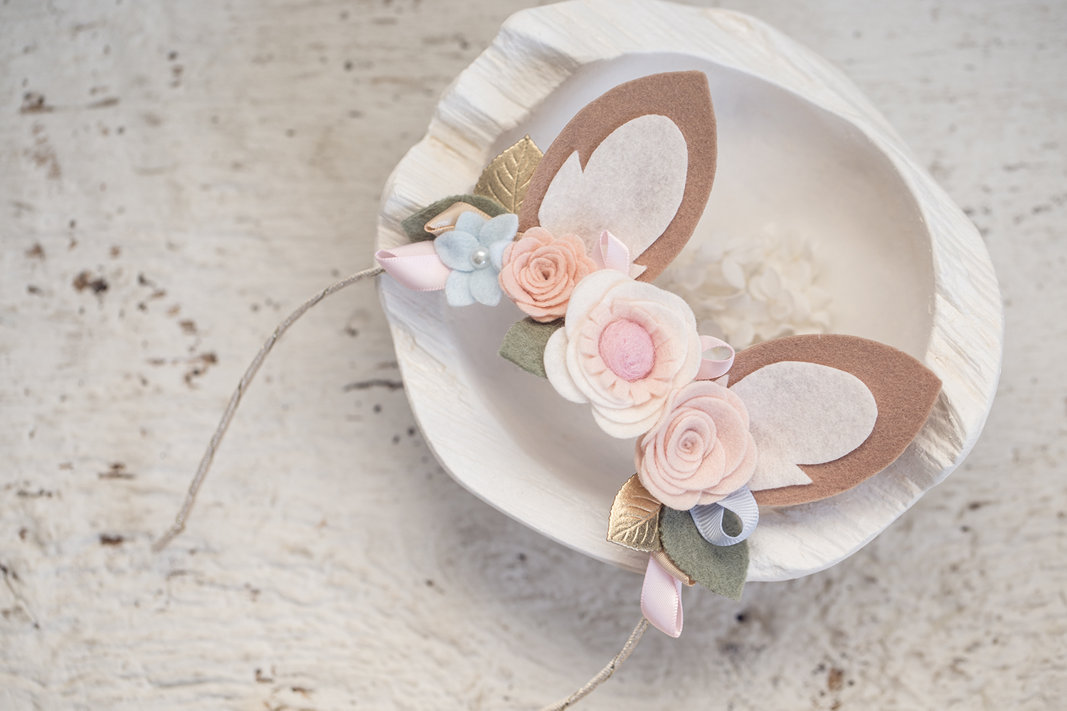 Ruční práce dětské čelenky do vlasů. Dětská čelenka do vlasů s oušky. Velikonoční dětská čelenka uděla z každé holčičky malou princeznu Králíček a žije si svůj den v celé její kráse a parádě . Dětská čelenka do vlasů je z nerezu, nezlomí se, ruční práce květů, lístků a stuh.